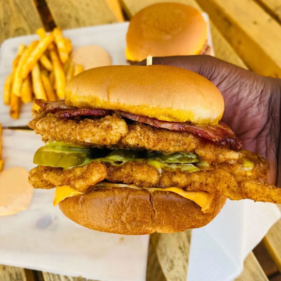 One of the highlights of The Burger Yard’s menu is their famous Gourmet Chicken Double. This mouthwatering masterpiece features not one, but two crusted and glazed chicken fillets generously bathed in a honey and garlic sauce. Topped with a slice of cheese, crispy bacon, fresh gerkins, and their delectable homemade burger sauce, it’s a taste sensation like no other. Each bite is an explosion of flavors that will leave you craving more.
